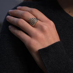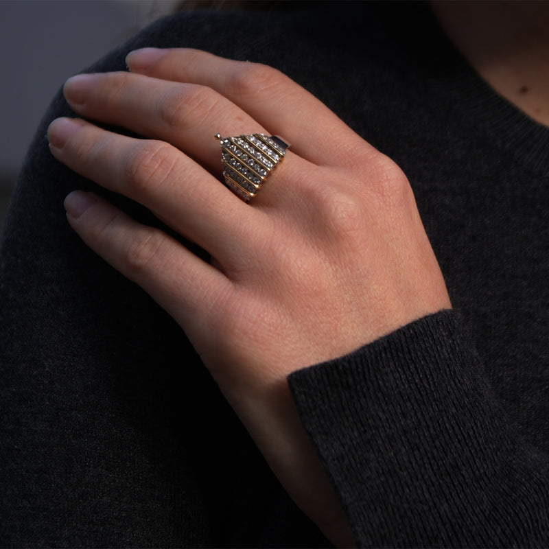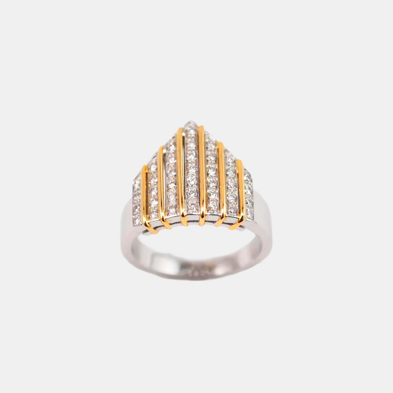Realizzato in oro bianco e giallo 18 carati e impreziosito da diamanti naturali, l’anello Milano firmato Adamas è un omaggio al cuore di Milano e alla sua maestosa bellezza. Le linee armoniose e i contrasti di luce richiamano la perfezione architettonica del suo simbolo più amato, trasformando la memoria in eleganza da indossare.