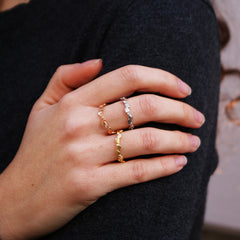 Disponibile in oro 18k, l’anello Laurea Shiny firmato Adamas è impreziosito da zirconi che riflettono la luminosità di ogni traguardo. Elegante e raffinato, è il gioiello che dona brillantezza a ogni momento speciale.