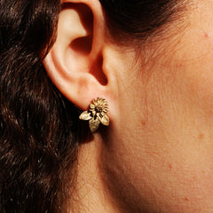 Gli orecchini Margherita firmati Adamas si distinguono per il loro fiore centrale in rilievo, circondato da petali incisi con cura artigianale. Realizzati in oro satinato 9 carati, uniscono forza e romanticismo in un design che celebra la vitalità e la luce di chi li indossa.