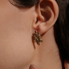 Gli orecchini Petali firmati Adamas reinterpretano la forma dei petali in una composizione morbida e dinamica, interamente realizzata in oro satinato 9 carati. Leggeri ma ricchi di carattere, catturano la luce ad ogni movimento, evocando la naturalezza e la raffinatezza di un fiore appena colto.