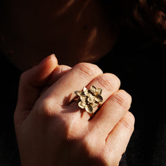 L’Anello Twin Hortensia Adamas celebra la grazia dell’ortensia attraverso una composizione delicata di due corolle affiancate e una foglia che ne accompagna il movimento. Realizzato in oro 9 carati, racchiude la dolcezza dei giardini in fiore in un design morbido, femminile e naturalmente elegante.